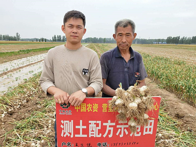2017年6月,“中国农资”巨野智能配肥站在山东省巨野县营里镇成立。成立后,配肥站的工作人员对当地大蒜的主要种植区进行了走访宣传,为百余位农户取土化验,订制测土配方大蒜专用肥200余吨,并建立了29个试验示范田。期间,通过苗期、生长期、收获期的定期回访指导服务,这些蒜农种植的大蒜在今年都喜获丰收。通过试验示范测产,大蒜测土专用配方肥比常规施肥平均亩增产20%以上,受到了蒜农们的普遍认可。