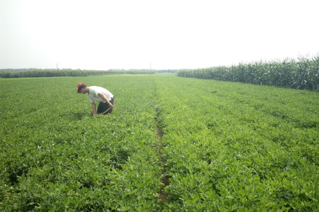 此时花生正处于饱果成熟期,李向玲走在乡间小路上,映入眼帘的都是泛黄的花生叶片。在片片黄叶间有一块花生田郁郁葱葱、长势健壮,格外引人注目。这就是王福增的花生地。