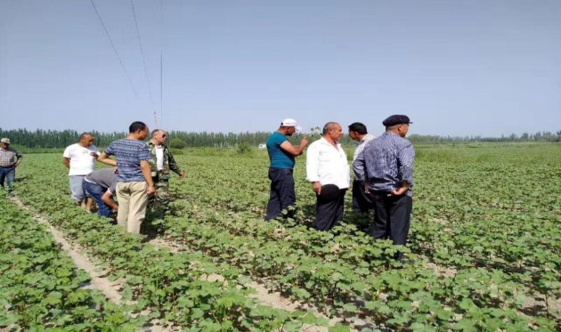 首站在巴楚县举办了棉花施肥、滴水、抗虫、抗灾培训活动及产品推介会。随后赶往喀什地区巴楚县附近的夏马勒乡和恰瓦克乡进行现场技术指导和配肥服务。接着去了毛拉乡和色利比亚乡,在合作社社长的带领下,走访了棉花长势不好、病虫害严重的4块棉田,棉农大部分都是维吾尔族农民朋友,种地经验都比较落后,对肥料的认识也不足,在用肥过程中偏差很大,交流也有些困难。技术人员耐心讲解,掰开了揉碎了地指导其如何正确施肥。最后在唐巴扎和琼库尔恰克继续走访和进行技术服务指导,努力在田间地头收集订单,最大程度地推进三家的合作进程。