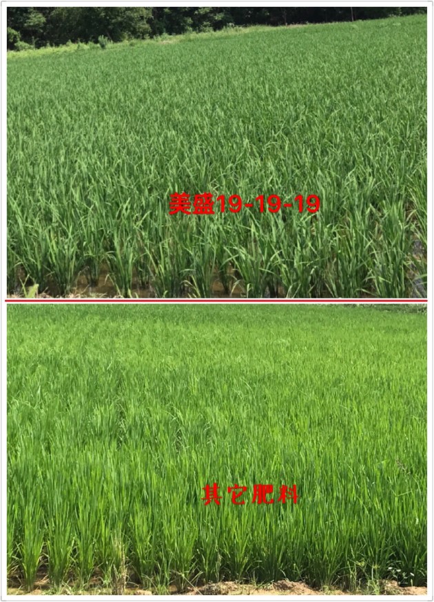 据农化专员介绍,美盛掺混肥19-19-19,选用加拿大出产的美盛独特晶体钾为钾源,可以快速溶解,高效吸收;特别添加部分美盛进口原料美可辛为原料,其采用独有的专利造粒工艺,将氮、磷、硫、锌等多种营养元素完美融合在每一个肥料颗粒中,养分缓释长效,在保障种苗安全的前提下,促进根系生长、改善植株长势、激发作物高产潜能。