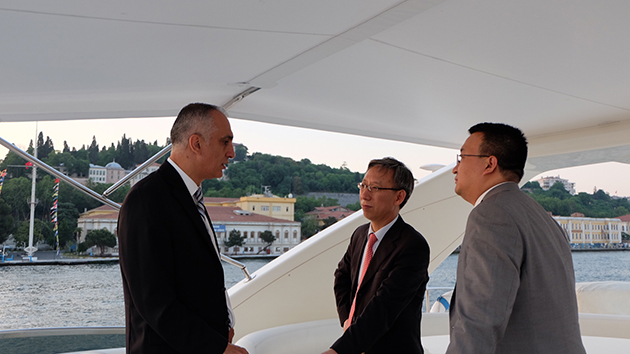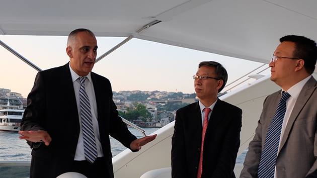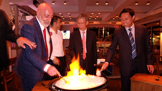图片:杨董事长,五洲丰总经理王学江,土耳其Gemlik公司董事长Ali Riza Yildirimi共同点燃合作希望之火。