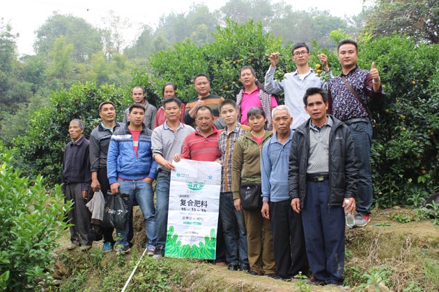 日前,公司农化服务团队专程来到广西省梧州市苍梧县思委村沙糖桔示范基地,组织当地经销商和种植大户以现场观摩的方式,示范海藻肥施用方法,分享种植经验,交流生产心得。据农化服务人员介绍,“海元宝”示范基地果园树龄一般都在10-13年,连续施用海藻肥两年后,不见一棵黄化,而且树型好,叶片油亮、厚实,挂果多。究其原因,主要是海藻肥在为果树提供全面充足养分的同时,有效改善了土壤团粒结构,大幅提高了果树根系吸水、吸肥能力,增强果树抗病、抗逆耐性,从而提高了产量,改善了品质,直接增加了果农收益。现场观摩时,在场的种植户也纷纷夸赞:“‘海元宝’是梧州沙糖桔的救星,使用‘海元宝’海藻肥的果树长得就是好!”