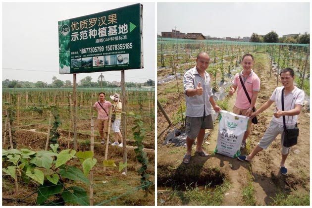 秦永德介绍,千烨公司经过7年的创新与发展,现在已经是一家专业从事农产品种植、收购、加工、包装及销售的企业集团,拥有上千亩优质罗汉果示范种植基地,发展农户种植1.2万亩,是桂林当地最大的农产品生产商之一。今年春节季,为能让当地农民种出高品质的罗汉果,千烨公司专门邀请365上市公司官网的农化服务人员到田间地头对农户进行一对一的生产技术指导,针对罗汉果的种植告诉农户如何施肥,如何做好病虫害防治,在给出综合解决方案后,进行了全程的跟踪服务。从4月上旬到6月上旬,渡头村罗汉果基地普遍施用365上市公司官网的“海元宝”海藻肥套餐,底肥用“海元宝”(15-10-15)加“海元宝”中量元素有机肥,确保持久均衡地为植物提供营养。 秦永德表示,虽然今年桂林雨水特别大,但从试验效果看,施用“海元宝”海藻肥的罗汉果不徒长、无缺素现象,受到当地用户的广泛认可,同时大家也希望能够得到365上市公司官网更多的农化服务支持,为他们的罗汉果生产提供充足的高效海藻肥供应。