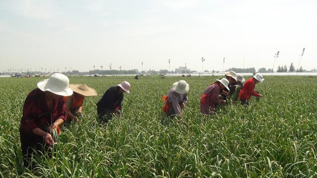 苍山县是我国有名的大蒜之乡。当下,正是蒜苔采收的季节,只见示范田里生长的蒜苔颜色浓绿、高大粗壮。当地农民韩敬茂高兴说:“我的苔子(蒜苔)长得就是比别家的强,色绿、粗长、没有黄斑,往年用其他肥料一亩能产一千二三百斤,今年开始用五洲丰蓝色海洋经典肥料,比往年能多出三四百斤。”