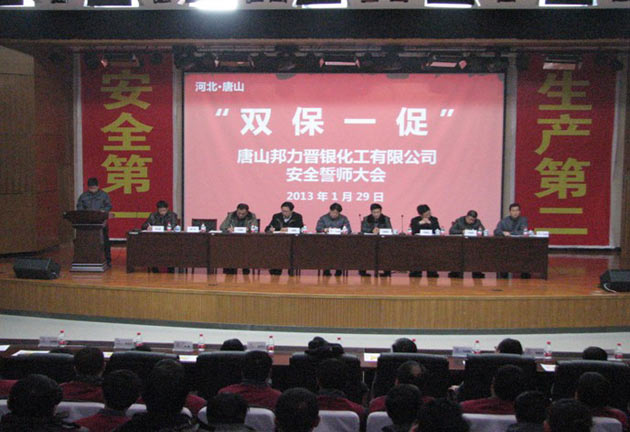 近日,唐山邦力晋银化工有限公司(简称“晋银公司”)在公司本部召开以“保安全、保全勤、促生产”为主题的安全生产誓师动员大会,公司领导班子成员及员工150余人参会。