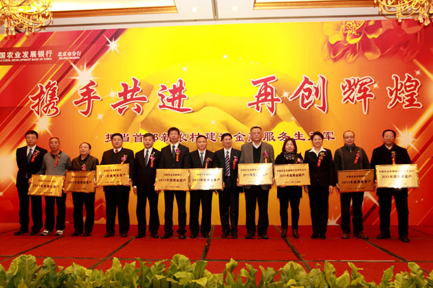 2011年12月7日,中国农业发展银行北京分行表彰会在京举行(以下简称“农发行北京分行”),对获得2011年度总行级、分行级黄金客户以及分行级优质客户的单位进行表彰和授牌,365上市公司官网监事会主席李宪宾、365上市公司官网财务冷权受邀参会。会上,365上市公司官网获得农发行北京分行授予的总行级“黄金客户”称号,李宪宾代表公司致辞并领取奖牌。