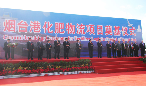 烟台港化肥物流项目签字暨奠基仪式于2010年11月8日在烟台市举行,我司作为项目投资方之一应邀出席,朱联副总经理及运输物流部韩绍忠经理代表我司出席了该仪式。出席仪式的还有烟台市市领导,烟台海关、边检、交通局、港航局等相关单位领导,以及其他投资方代表。 烟台港化肥物流项目是由我公司与烟台港、运安公司、中海油、嘉禾农资共同投资兴建的国内首个专业级国际化肥物流基地,总投资3.5亿元人民币,项目将依托烟台港的区位优势,资源优势和服务优势,发挥各股东方的合力,打造中国最大的化肥进出口物流平台;烟台港化肥物流项目的建设和运营将大幅提高烟台港进出口化肥的中转能力,使烟台港成为国内第一个拥有进出口化肥专业码头的国际化口岸,同时,也将进一步提升我国在国际化肥贸易领域的市场地位,增强我国在国际化肥行业的影响力,具有显著的经济效益和深远的战略意义。